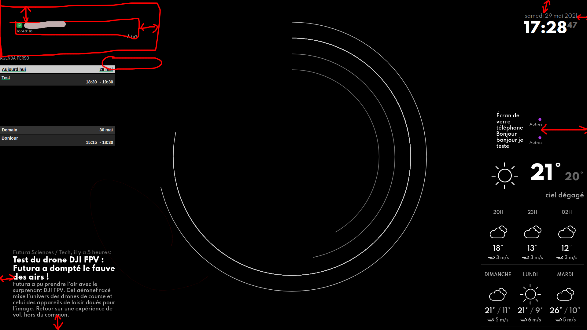 you can send info to a node_helper spawn routine that can send info onto the module, which can manipulate (change) the UI/webpage