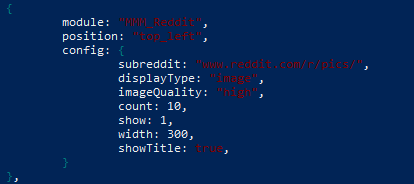 https://github.com/MichMich/MagicMirror#configuration * */