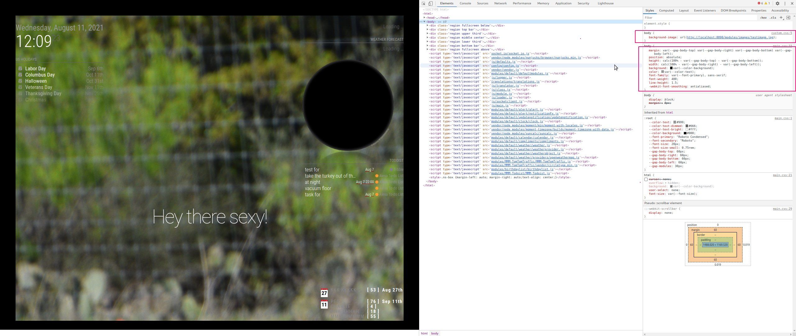 body { background-image: url("file:///home/sam/MagicMirror/modules/images/testimage.jpg") }even tho it works in chrome