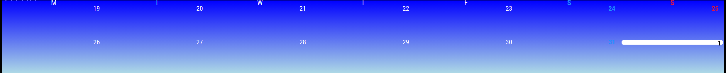 .CX3 .cw { display: none !important; } .CX3.bodice { background:linear-gradient( blue,lightblue); } .CX3 .cell { background: transparent; border: transparent; } .CX3 .cell.today { border: transparent; } .CX3 .cellDate { margin-right: 20px; } .CX3 .cellHeader .cellDate span.dateParts.month.seq_0 { display: none; }