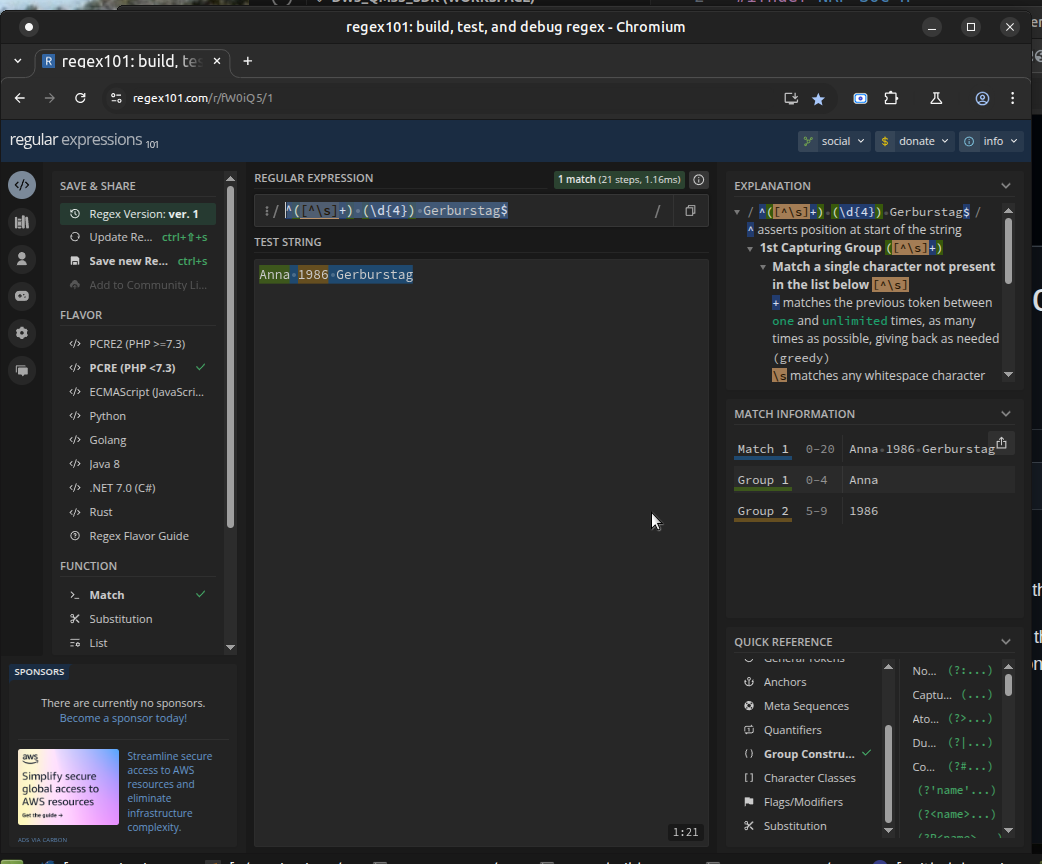 ^([^\s]+) (\d{4}) Gerburstag$I use https://regex101.com/ to test (see below)