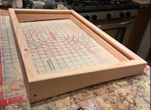 The bezel is Douglas fir, which is much lighter than my preferred maple, but also easier to mill: