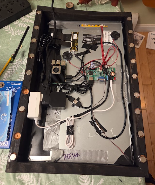The hardest part was definitely making the custom wood bezel - I was a woodworker, but matching the profile of the refrigerator, keeping weight down, minimizing the profile, and ensuring I only have one flexible cord having to make the corner from fridge side into the MM was definitely a challenge.