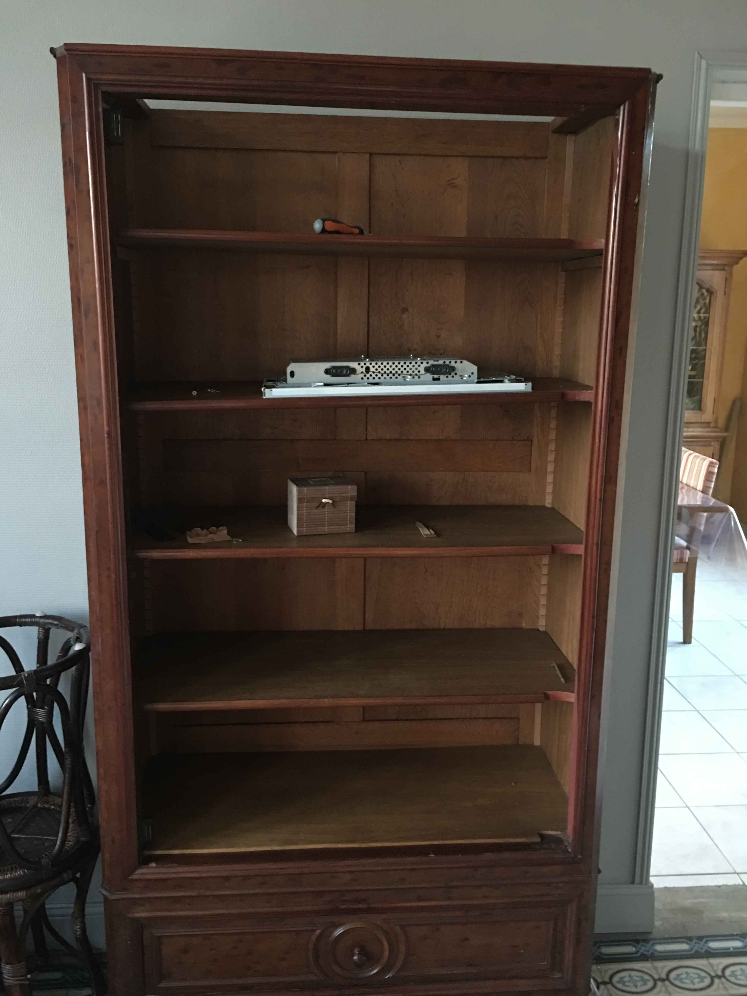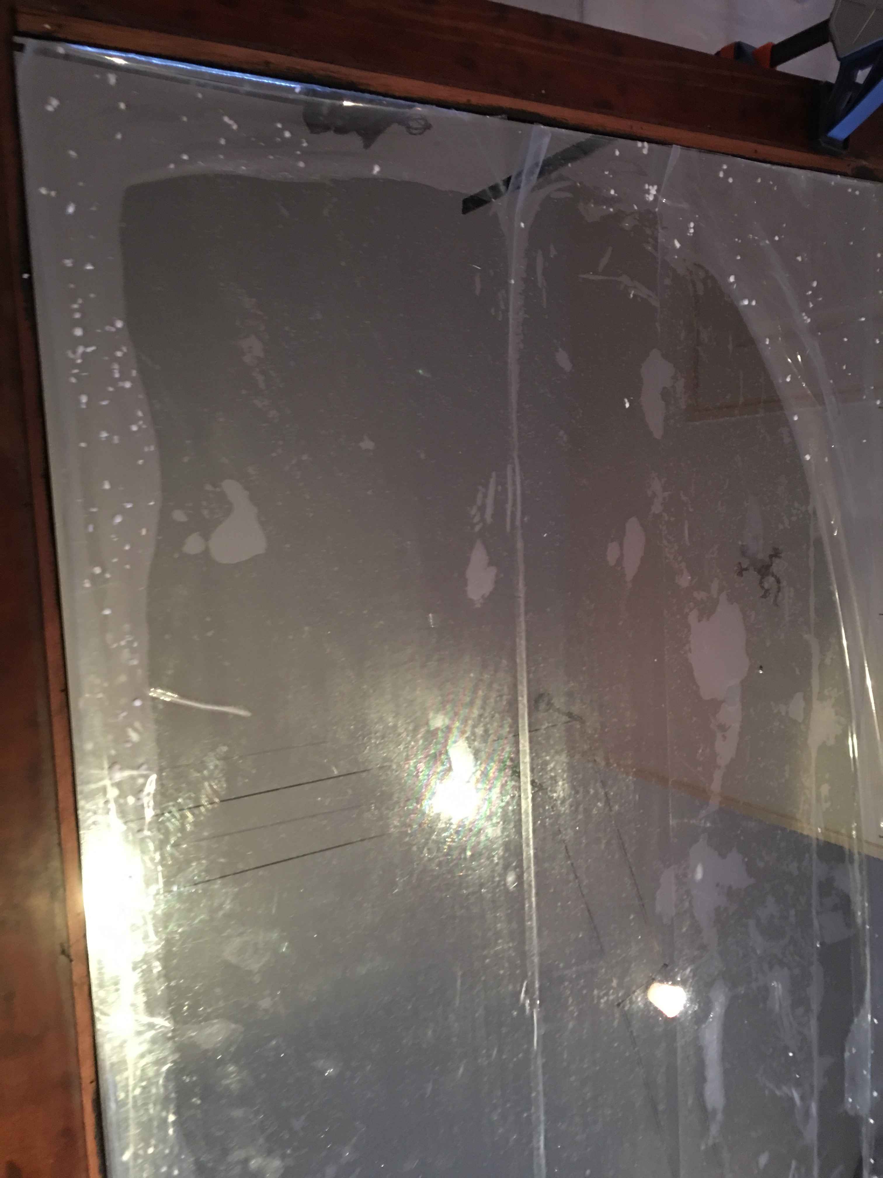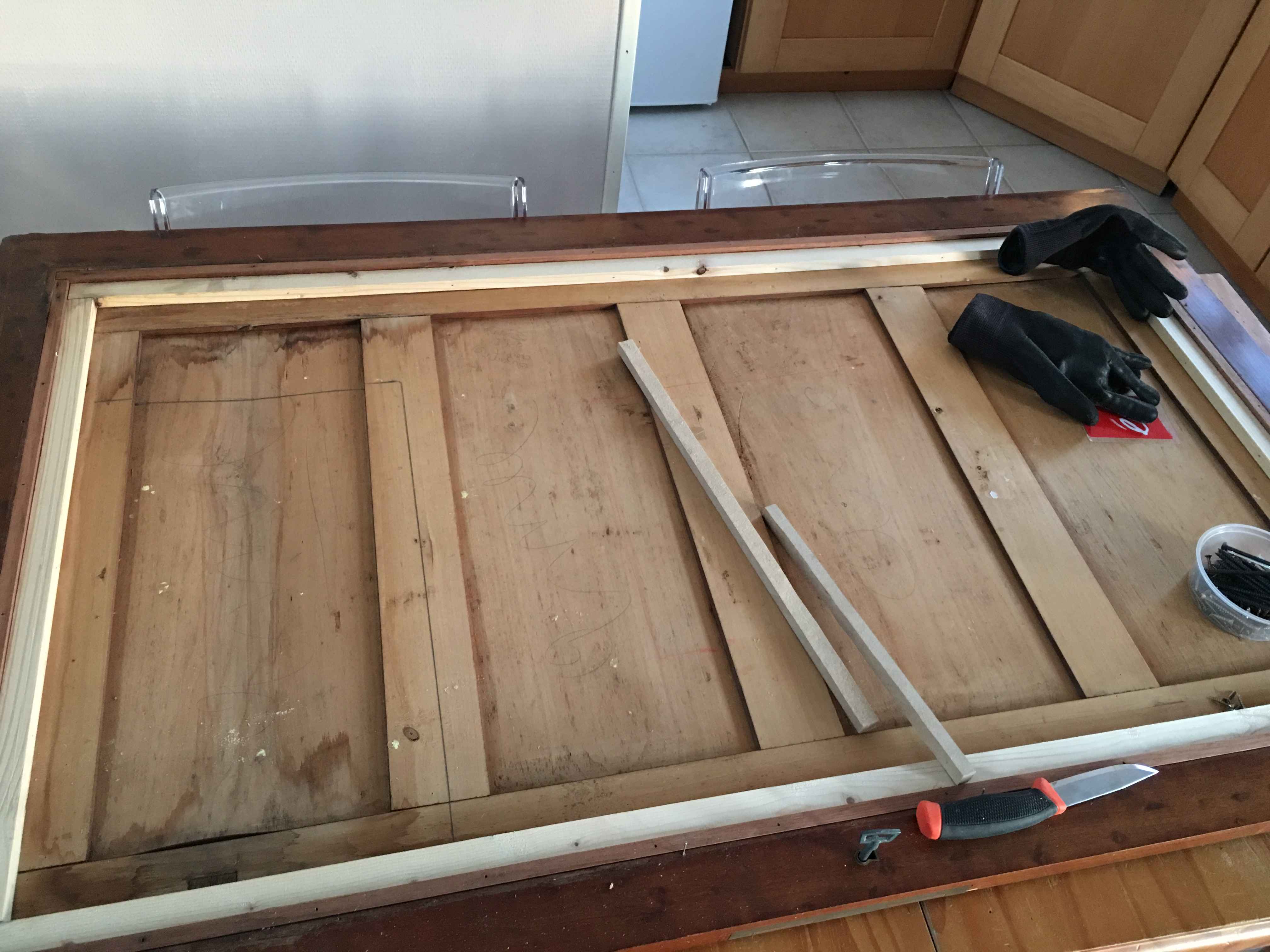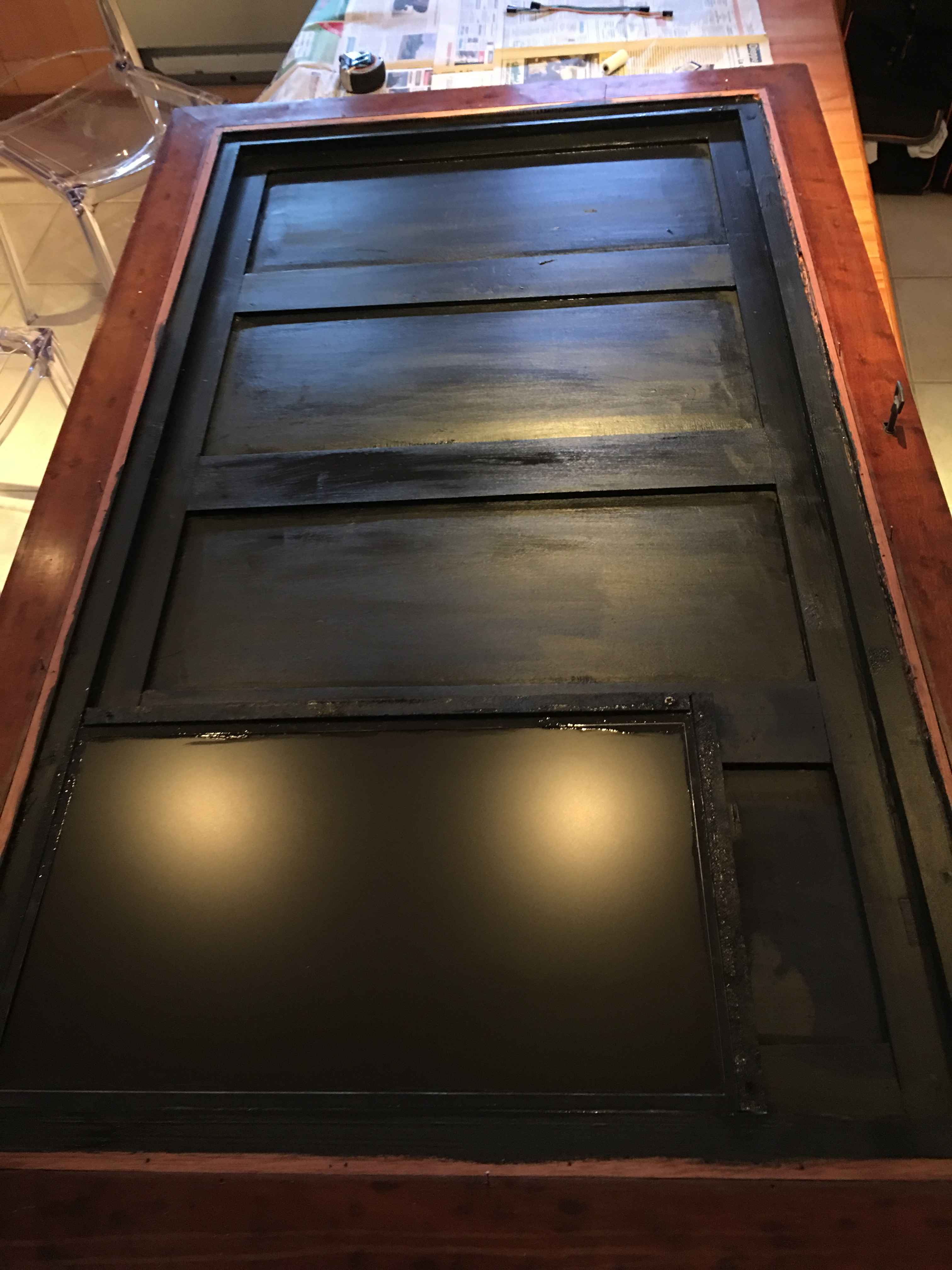 I just finished my second mirror. I recovered an old piece of furniture that was broken. I took it all away and repaired it. As you can see: there is a white mark on the right side. I dropped during the installation.