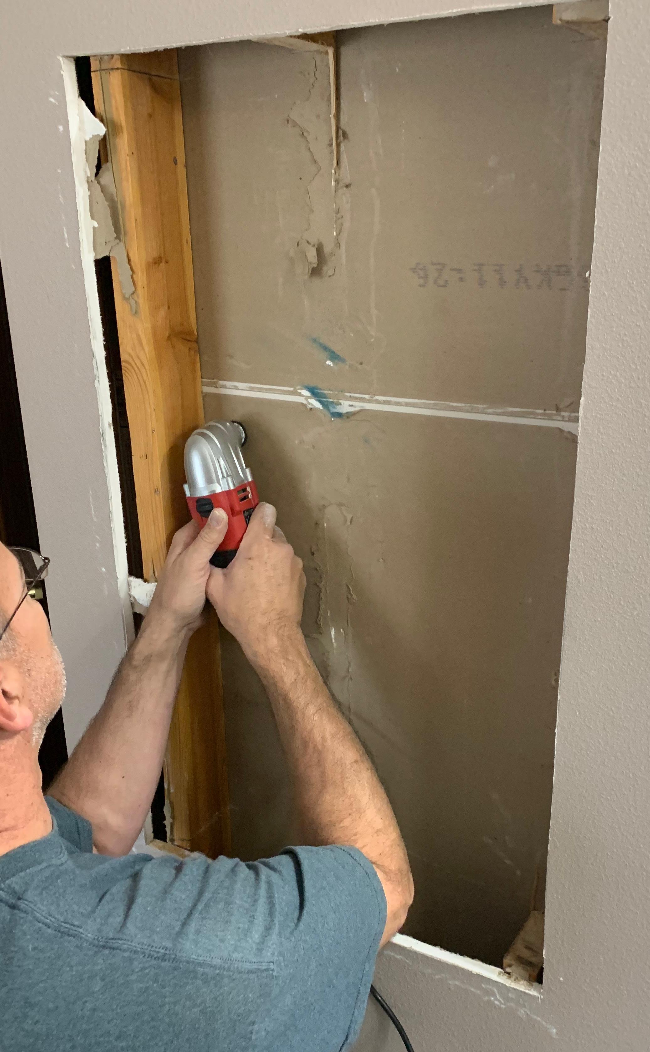 40 in garbage TV from WalmartI wanted to give this as a gift for my wife, and I didn’t want to have a large box built around the mirror. I chose a location in our bathroom that had a closet on the other side. This allowed me to set the TV into the wall and mount the mirror flush against the wall.